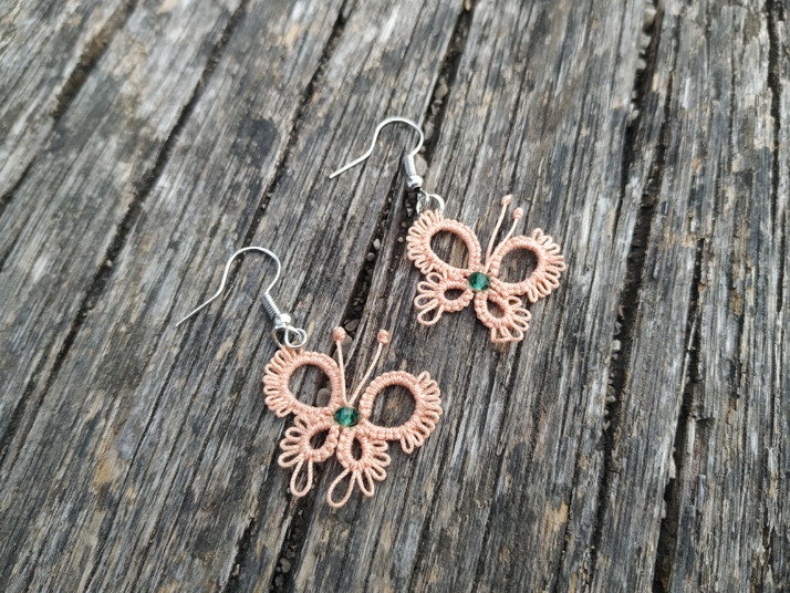 frivolitkove naušnice vyrobené z bavlny Anchor