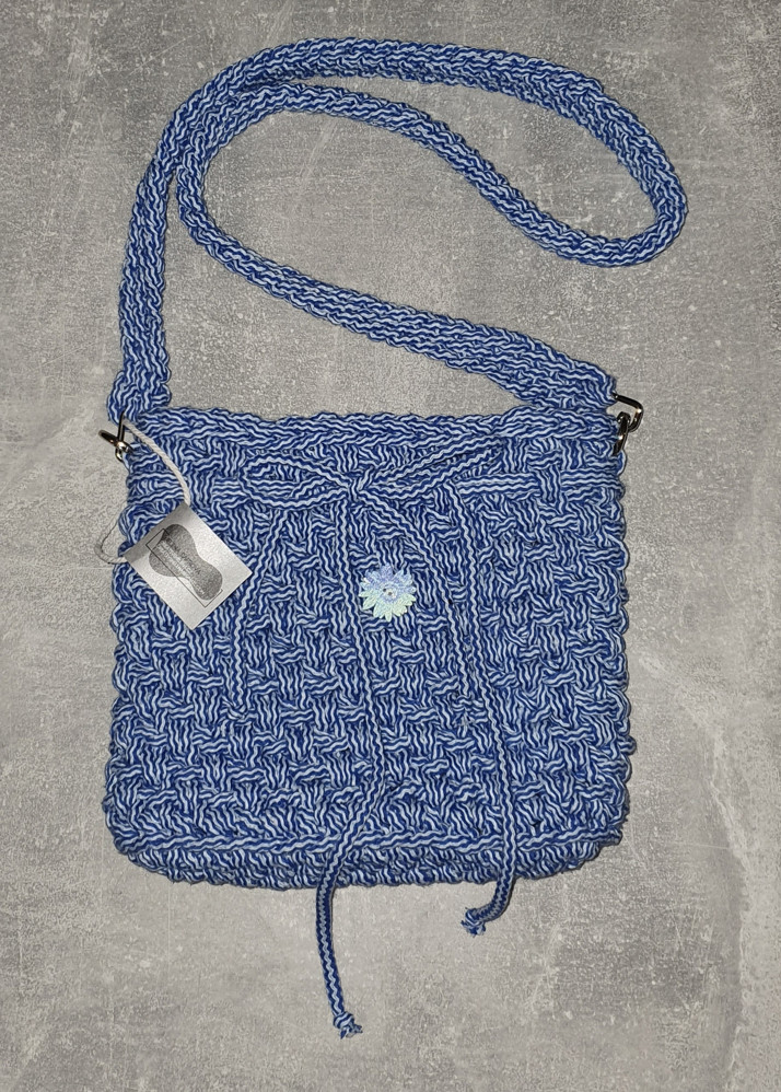 Hackovana kabelka velikost 23 x 20 cm, zavitani na magnet. Cena 590Kc