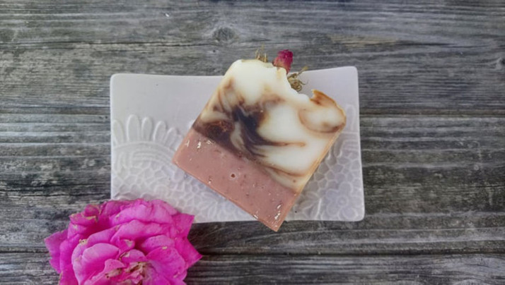 Mýdlo obsahuje prášek z damašské růže a růžový jíl. Velmi výživné složení pro suchou,zralou a namáhanou pokožku.