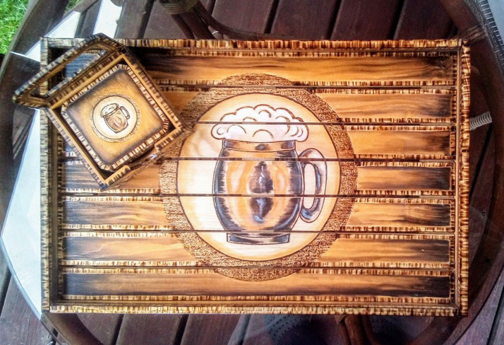 Vypálený motiv, ošetřeno olejem, přelakováno
