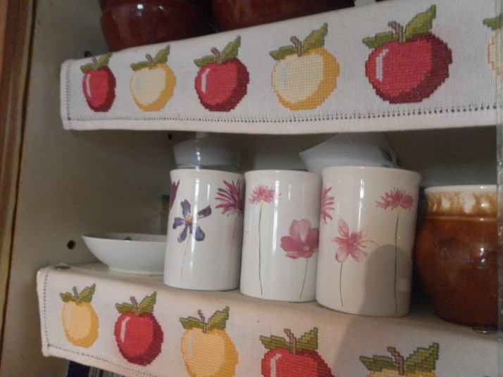 Naše mamky a babky mali vždy v skrinkách na poličkách fodru. Papierovú alebo vyšívanú. Ja som si na chalupu vyšila takéto jabĺčka...
