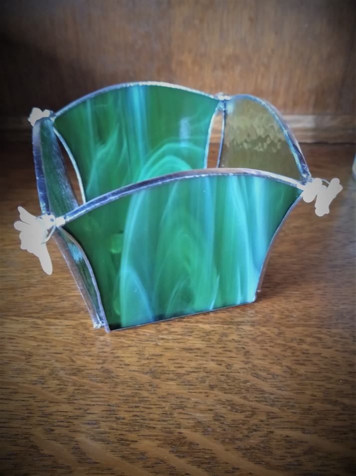 skleněný svícen tiffany, zdobený přírodními kamínky