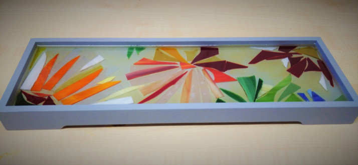 dřevěný podnos se skleněnou mozaikou v pryskyřici