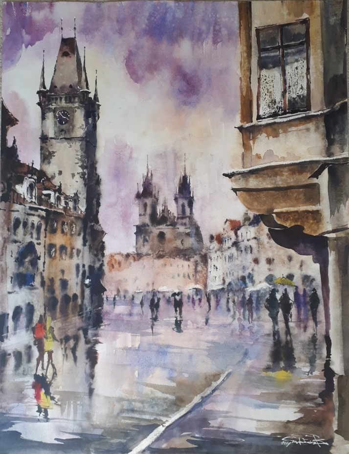 Obraz namalovaný akvarelovými barvami .50-65