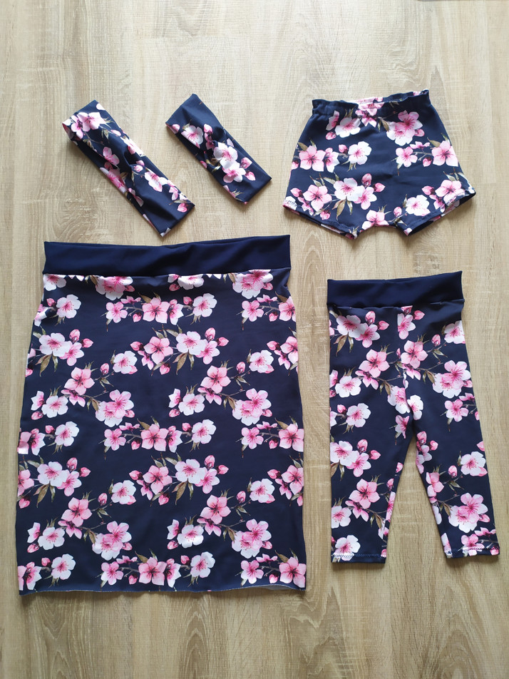 V poslední době je in se stejně obléci se svým dítětem. Je to stylové a nevšední. Čelenka, sukně, kraťase a legíny. Je možnost vybrat si z různých motivů látky.