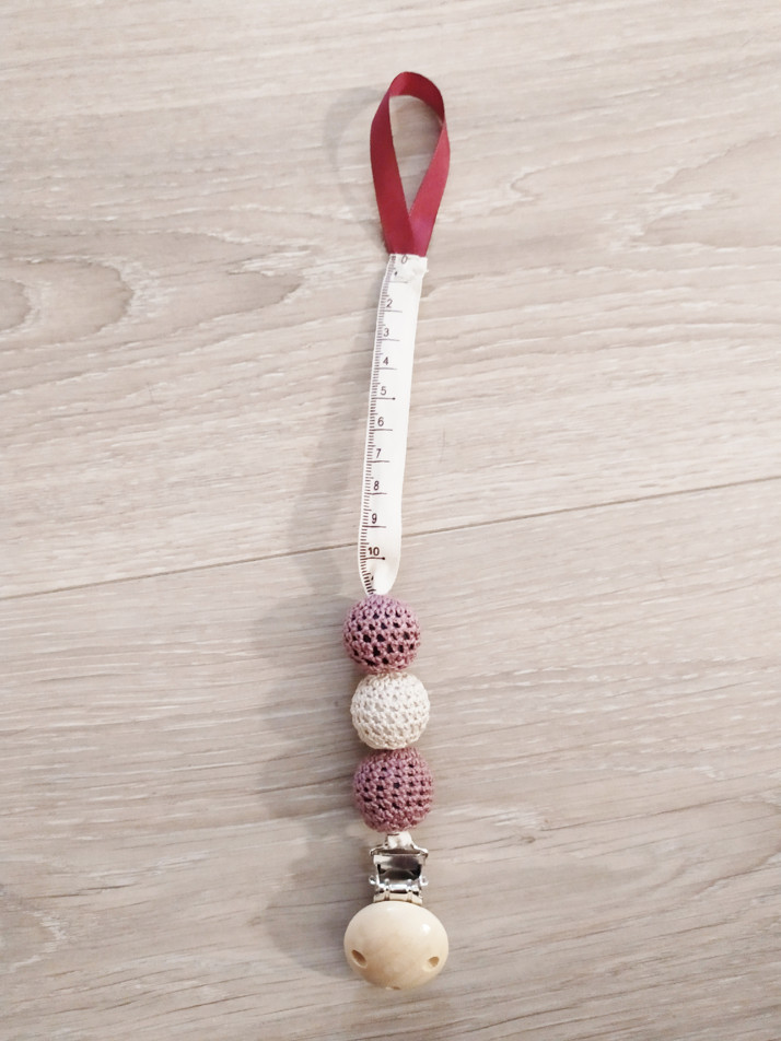 Klip na dudlík v jemných lomených barvách. Lze vybrat z různých barevných odstínů.