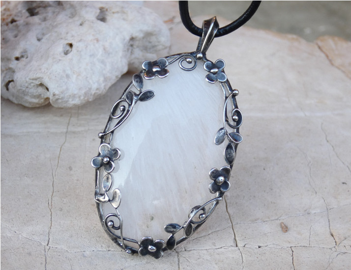 velký skolecit,drát,stříbrocín,kůže - výroba na přání (kámen si dodala zákaznice sama)