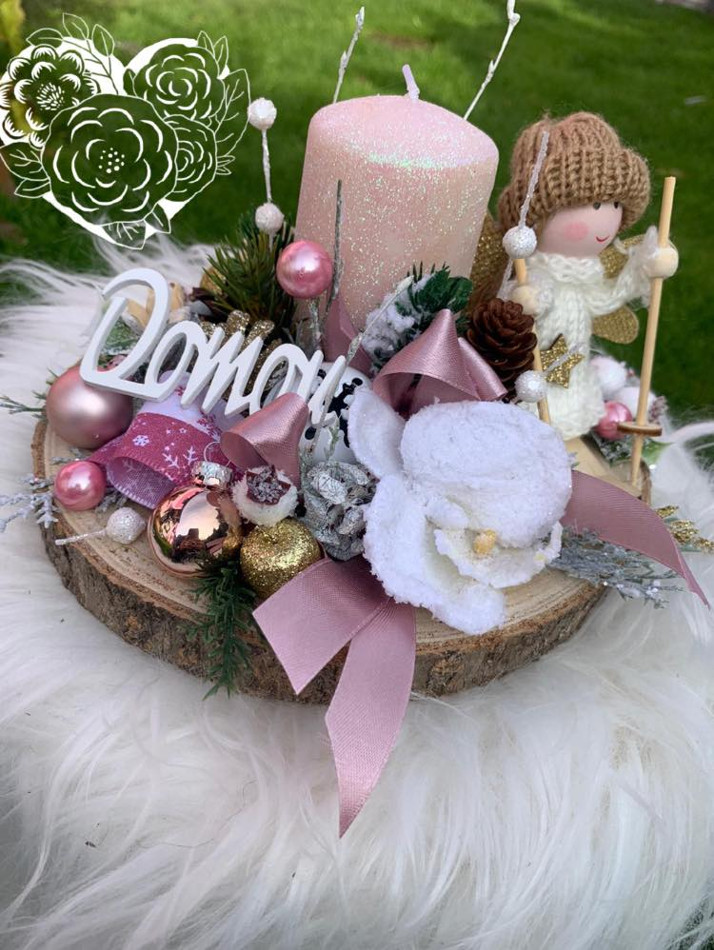 Vánoční dekorace na dřevěné podložce