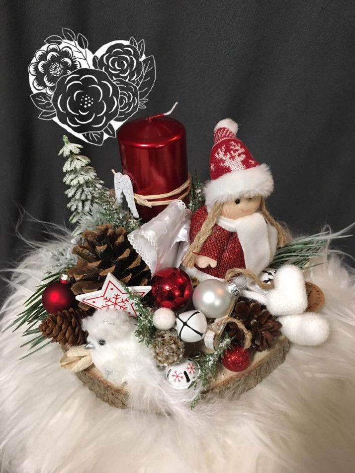vánoční dekorace na dřevěné podložce