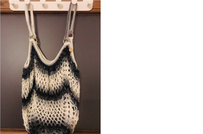 Ručně háčkovaná síťovka se zpevněnými uchy a ozdobným dřevěným knoflíkem. Nosnost 5-10 kg, pružná dle obsahu. Materiál bavlna a polyester.