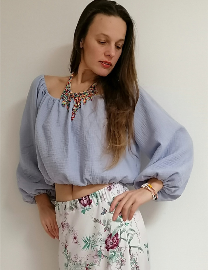 Půvabná tunika v Boho stylu lila světlá, dlouhý rukáv, materiál 100 %přírodní mušelin /dvojitá gázovina, velikost uni 34 až 40, 42 až 44