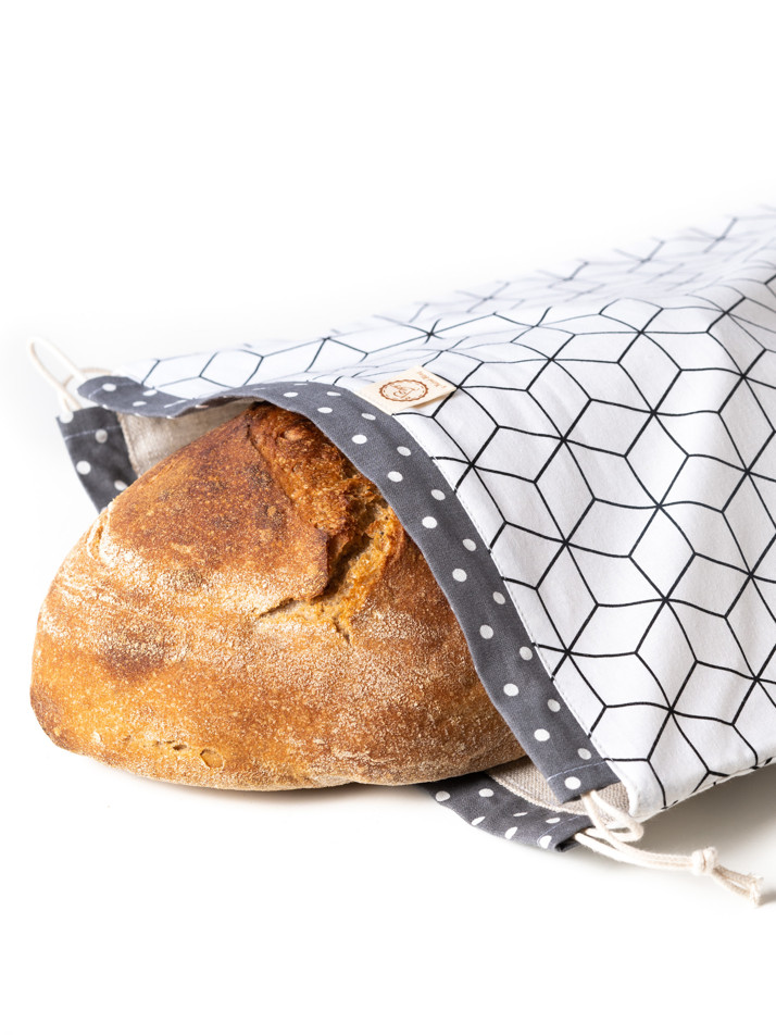 Chlebovka značky Bagydesign je elegantní designový dvouvrstvý pytlík na chleba ušitý ze 100% přírodních materiálů (len/bavlna).