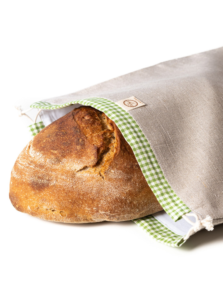 Chlebovka značky Bagydesign je elegantní designový dvouvrstvý pytlík na chleba ušitý ze 100% přírodních materiálů (len/bavlna).