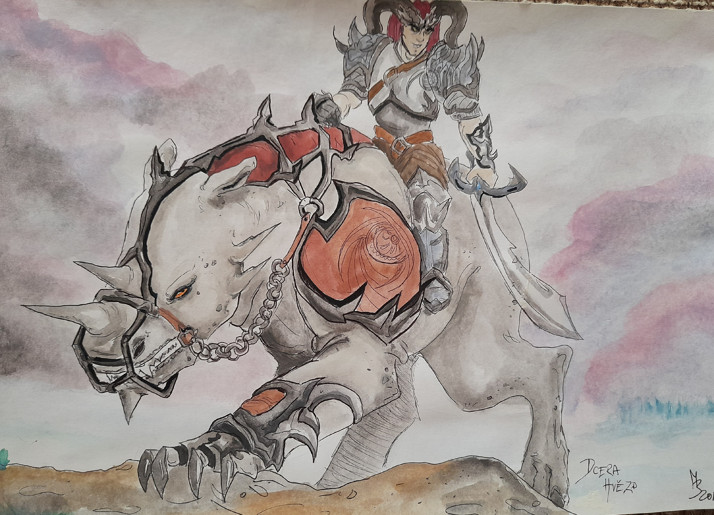 Gron Thargos, jeden z hlavních hrdinů příběhu, na svém karnyrovi.
