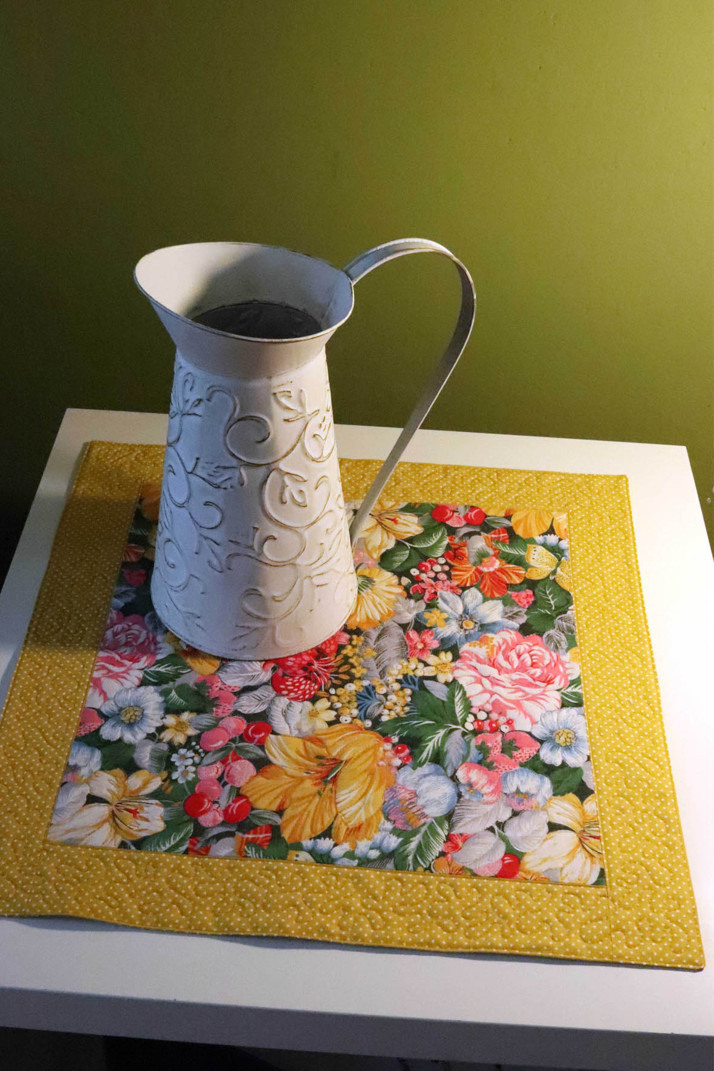 Květinový ubrus- prostírka- z veselé letní látky 45x45 cm zpevněno třema vrstvama a prošitím květinového vzoru.