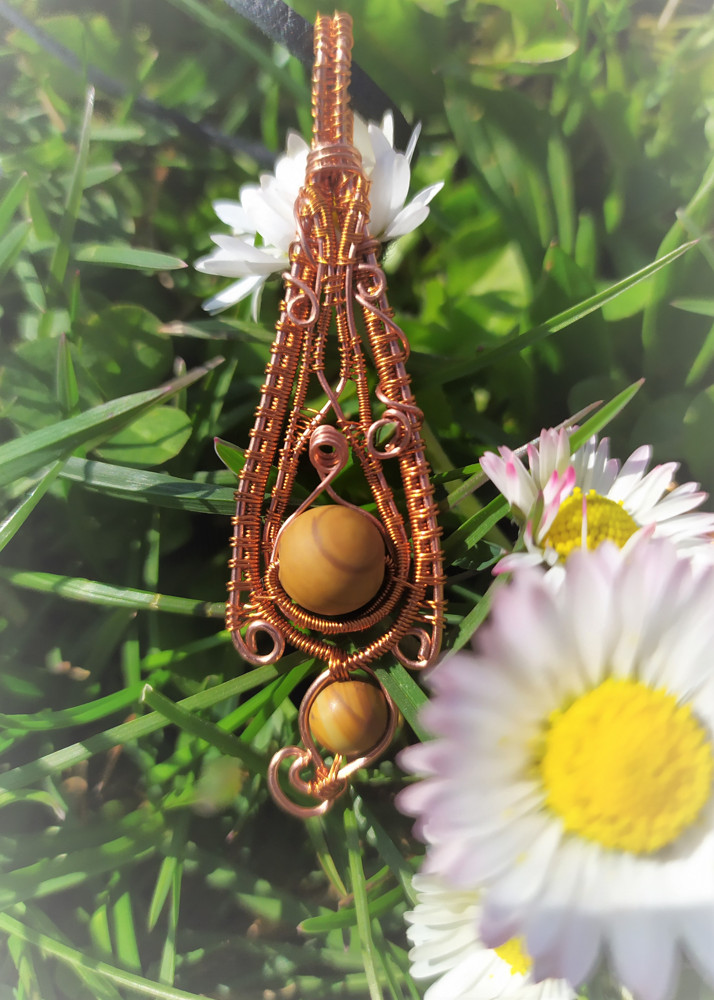 Měděný přívěsek na krk s korálkem Sandalwood.