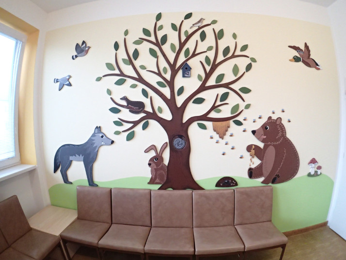 Naše realizace dřevěných dekorací do ordinace dětské lékařky.