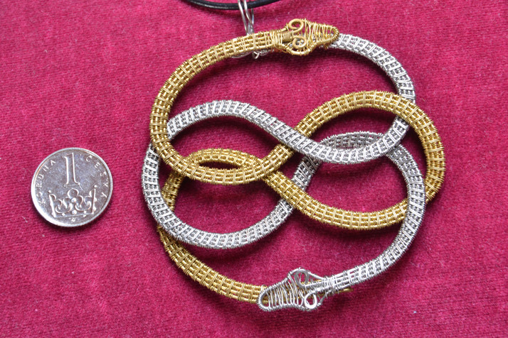 Orin z Nekonečného Přiběhu tvořený metodou wire-wrapping. Srdcovka.