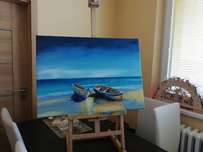 Opuštěné lodě, akryl, 70 x 50 cm, expresionismus.