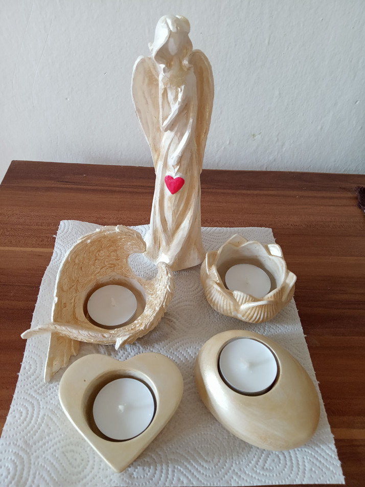 Andělka a svícny v jedné barvě, možno i samostatně.