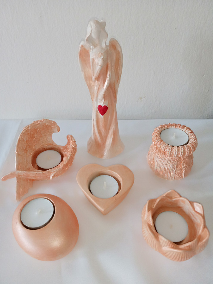 Andělka a svícny v jedné barvě, možno i samostatně.