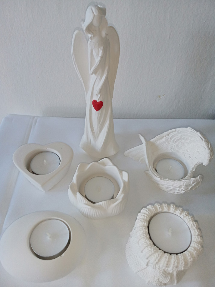 Andělka a svícny v jedné barvě, možno i samostatně. Barva bílá.