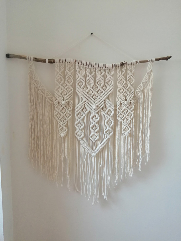 Barva krémová,materiál recyklovaná bavlna průměr 25mm,rozměry bez přírodní větve 60x60cm.