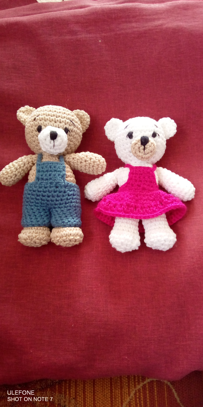 Háčkovaní medvídci,velikost 12 cm