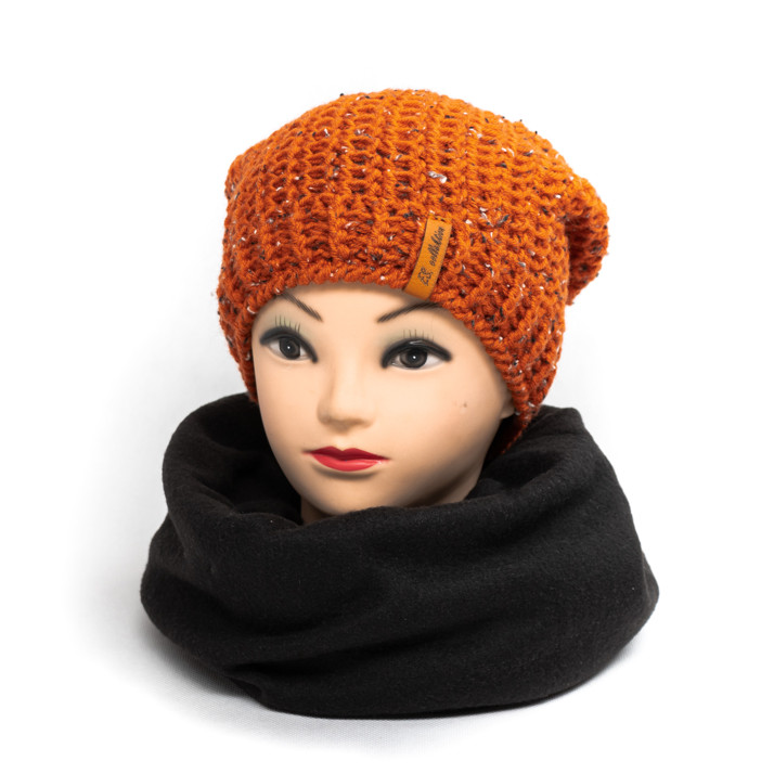 Cihlová homeless čepice podšitá fleecem po obvodu v čelní části.