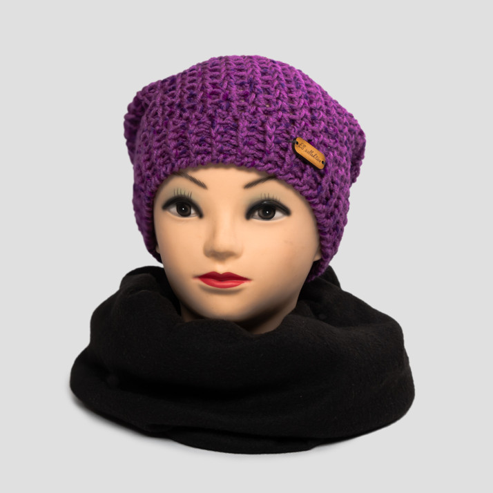 Fialová homeless čepice podšitá fleecem po obvodu v čelní části.