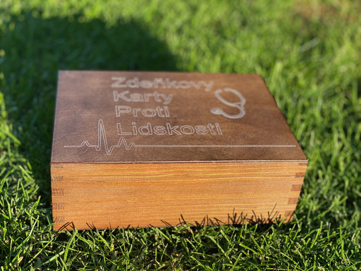 Karty Proti Lidskosti - na přání jsme vyrobili speciální krabičku s motivem stetoskopu a kardiogramu pro lékaře - kardiologa :-)