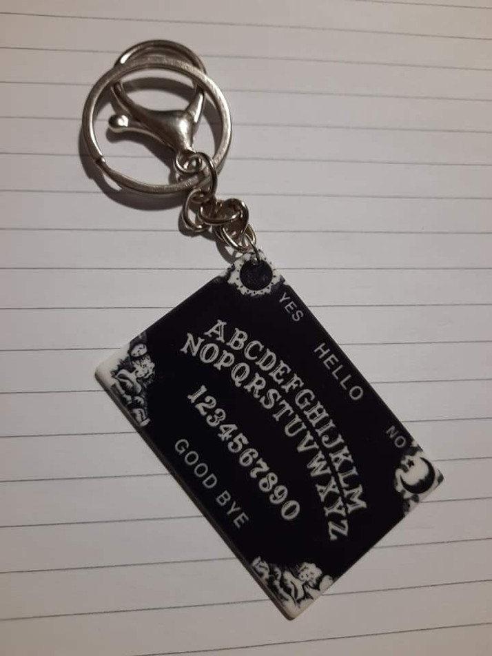 Materiál plast a kvalitní kovová klíčenka, rozměry 4x6cm ouija destička, cena 100kc