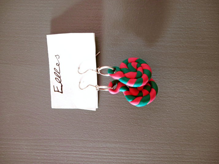 Zeleno-růžové náušnice z fimo hmoty