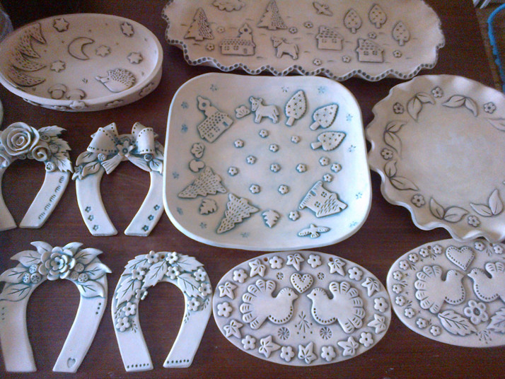 Po prvním výpalu, kterému se říká přežah přichází na řadu patinování. Po té glazování a následuje tzv. ostrý výpal.