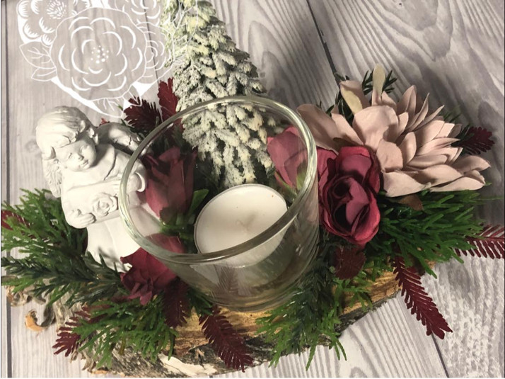 Dekorace na hrob na dřevěné podložce