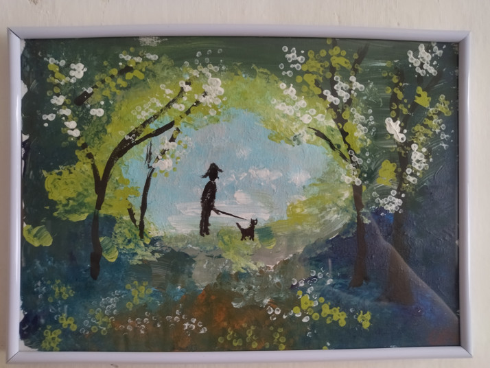 Akryl na plátýnku, v rámečku, ošetřeno závěrečným lesklým lakem