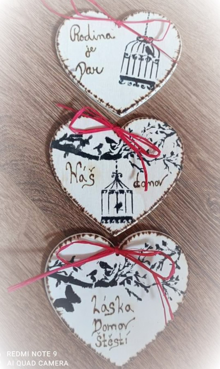 Vypalované dřevěné srdíčka s razící metodou