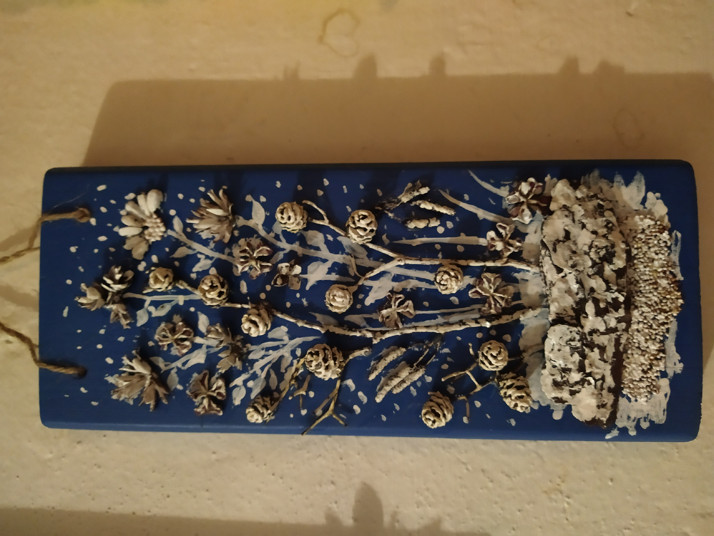 Dřevěná tabulka se zimním motivem