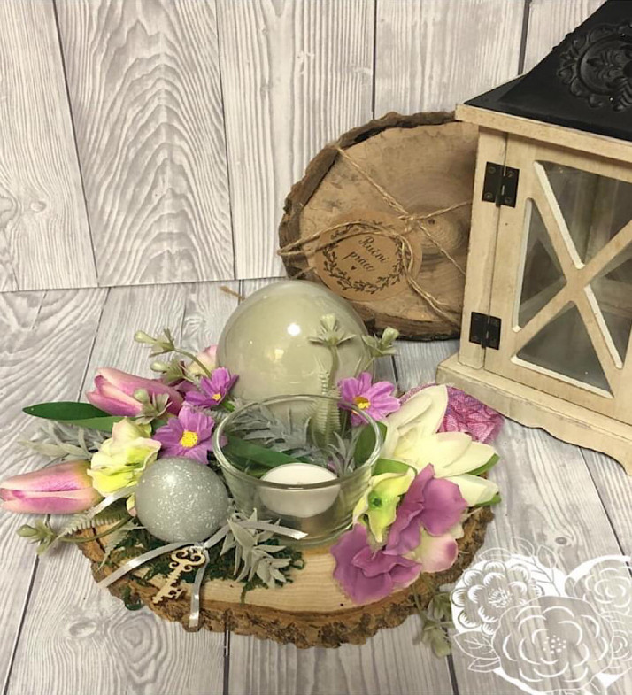 Velikonoční svícen na dřevěné podložce