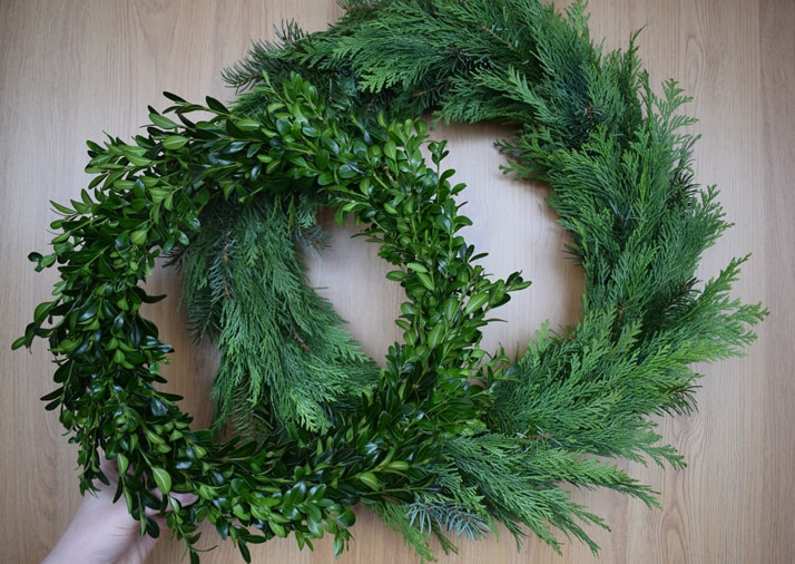 Vlastní proutěný základ, buxusový a thújkovy se stříbrným smrkem