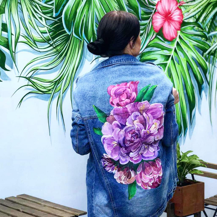 květiny na džínové bundě