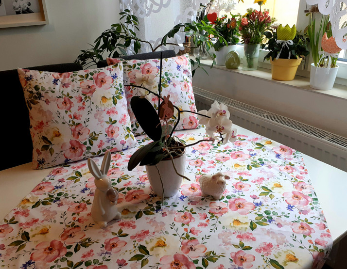 Jarní květinové povlaky na polštáře 40x40cm cena 130 kč/kus + ubrus na stůl rozměr 90x90cm cena 170 kč