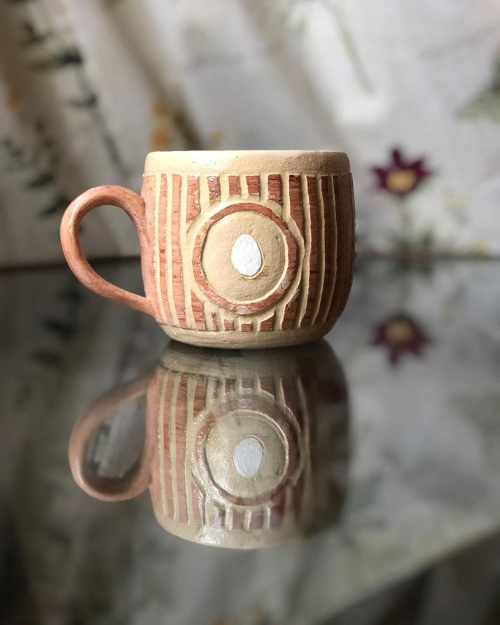 Hrnek s malbou Vejce, který má na druhé straně malovanou slepici. Je to hrnek pro filozofy - aneb co bylo dříve?