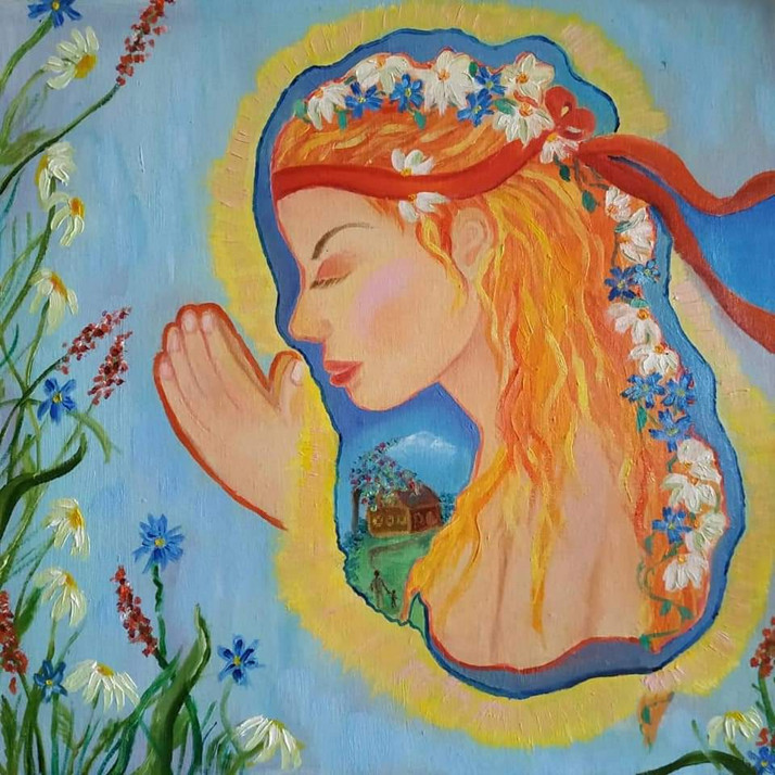 Tento obrázek jsem namaloval už dávno. Ale nyní, v dobách války, obraz ukazuje lásku matky k dítěti, manželky k manželovi, lásku k domovu a vlasti. Modlíme se za Ukrajinu. Děkujeme České republice a občanům České republiky za pomoc Ukrajině v této těžké době.