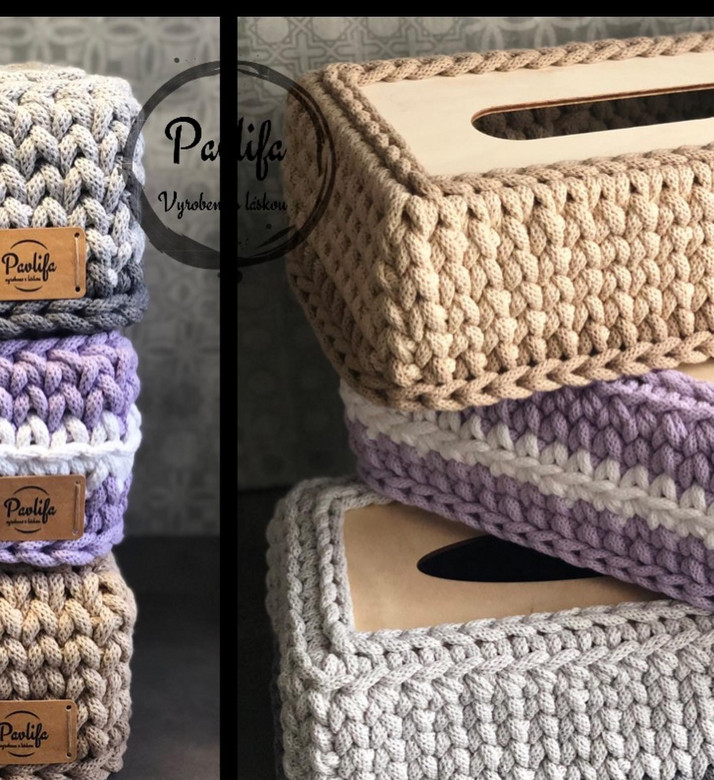 Nabízím různé velikosti, druhy a barvy háčkovaných výrobků - kruh, obdélník, čtverec, srdce, dále také organizér na kosmetiku, box na kapesníky, podnosy a podtácky,..