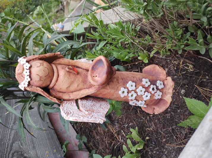 Anděl na ochranu. Do mističky lze umístit čajovou svíčku a užívat si pohled na osviceneho andilka z terasy u sklenky vina :)