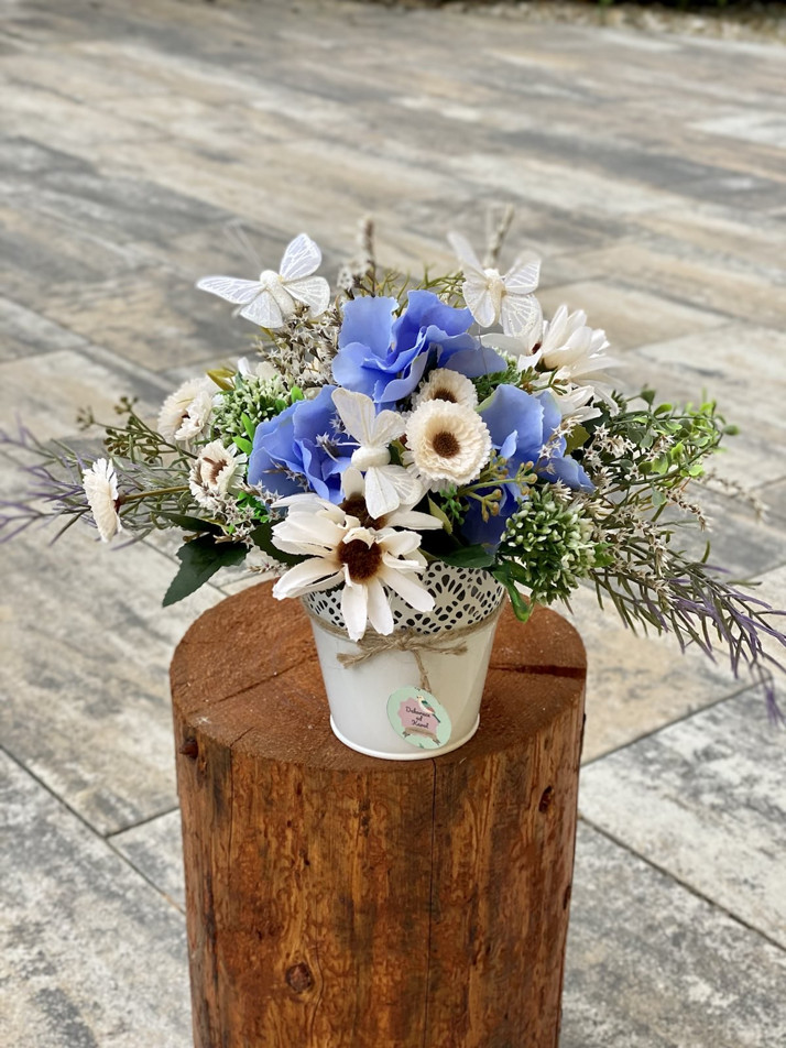 Trvalá, květinová dekorace s motýly.