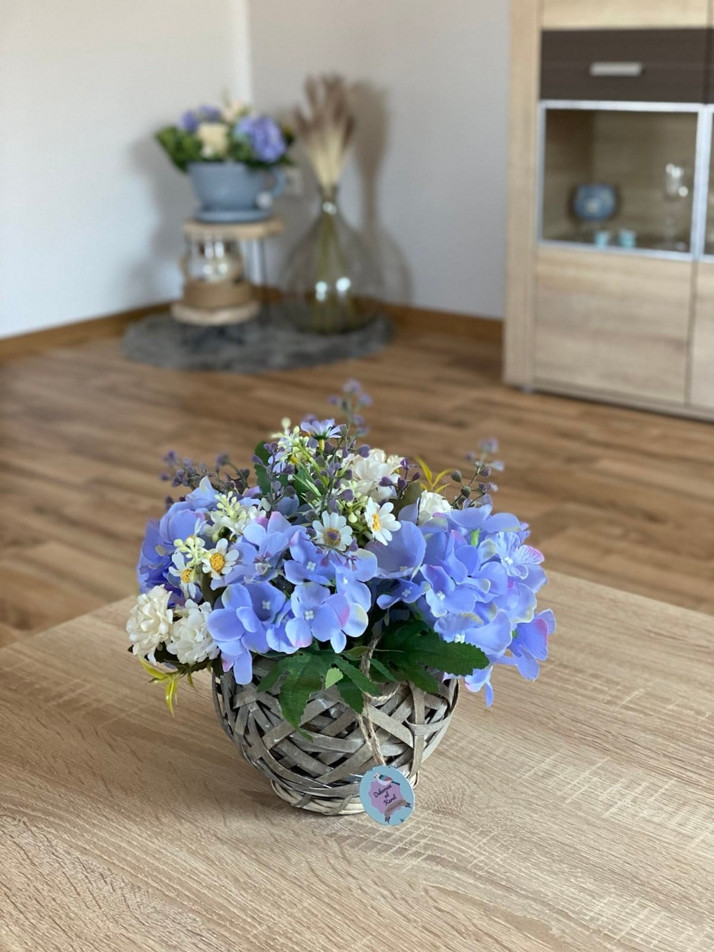 Trvalá, květinová dekorace s hortenzií.