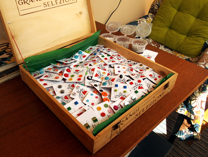 Už tradiční Weggart "Peckárium" je zase plné. Náušnicové pecky z buttonů, potahovaných buttonek, stiskacích knoflíků, knoflíkových baterií a všech možných druhů knoflíků. Připraveno speciálně pro Samošku :-)