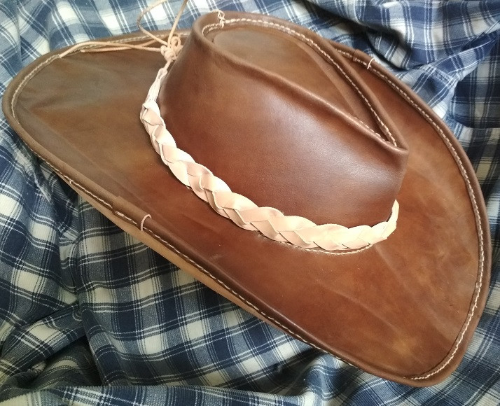 Kožený kovbojský klobouk vel.54 - 58, hovězí kůže 1,4 mm, ručně šitý